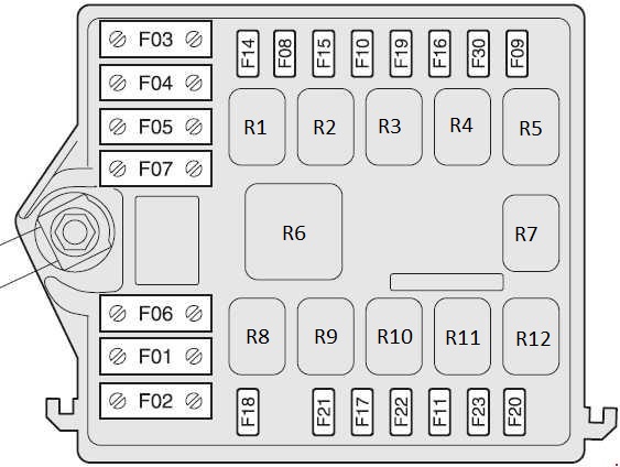 | R9 | relé da bomba de combustível (FP) – relé da bomba de gasolina/diesel elevador |