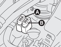 Fusíveis acima da caixa de fusíveis principal