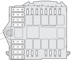 | Unidade de controlo do compartimento do motor | F70 (MEGA) | 150 | Bateria (+) |