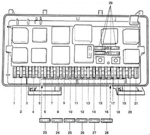 Audi 100 C3 (1989-1991) – diagrama da caixa de fusíveis