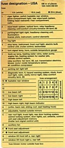 | 1 | 16 | vermelho | Acendedor de cigarros, interruptor de aquecimento da janela traseira, luz do porta-luvas, limpa pára-brisas/lava-luvas traseiro, encostos de cabeça/ compartimento traseiro rebatíveis, rádio |