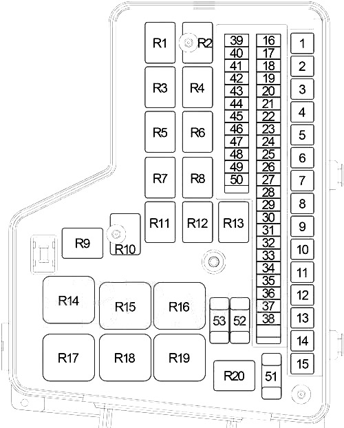 | 15 | 50 | Estacionamento de relé de lâmpadas |