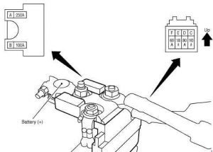 Infiniti FX35 – diagrama da caixa de fusíveis – bloco de fusíveis no terminal de bateria positivo