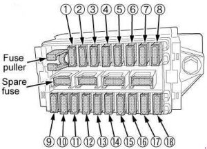 | 13 | 30 | Solenóide de corte de combustível, luz de trabalho |