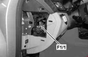 | 21 | 7,5 | Interruptor de luz de travagem Interruptor de luz no porta-luvas Reconhecimento da ocupação do lugar do passageiro da frente e Unidade de controlo do sistema de detecção de peso ACSR (WSS). |