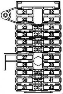 | 32 | Motor do vidro traseiro direito (até 2008). Unidade de controlo de topo suave (a partir de 2009). |