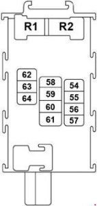 | 50 | R9M: Relé de elevação da janela, interruptor principal do pára-brisas, montagem do motor do tejadilho, montagem do motor da pala solar, relé da janela eléctrica, interruptor de apoio lombar, interruptor de apoio lombar, interruptor principal do pára-brisas, interruptor do banco (lado do condutor), interruptor do banco (lado do passageiro) | |