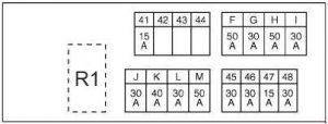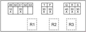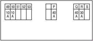 | 50 | 10 | Ventilador de arrefecimento relé 4, Ventilador de arrefecimento relé 5 |