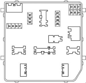 | e | 100 | QR: Bloco fusível (J / B) – (relé acessório, BCM, número fusível: 7, 25), relé soprador (número fusível: 17, 27) |