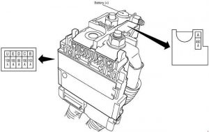 | N | 30 | Inversor DC / DC, bloco fusível (J / B) No. 63 – (unidade de áudio, unidade de controlo Navi, unidade de controlo de monitor ambiente) Com o sistema Stop / Start: Conversor DC / DC – bloco fusível (J / B) – ( Relé acessório, fusível nº: 20, 59, 60 |