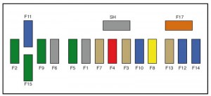 | F11 | 15 | Interruptor de ignição de baixa corrente |