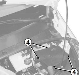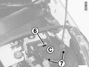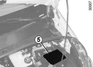 Virar a unidade 5 para aceder aos fusíveis no compartimento do motor.