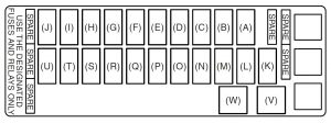 | W | 30 | Fusível de janela eléctrico |