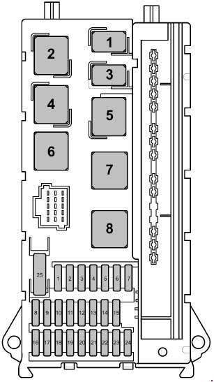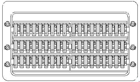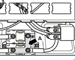 Fusível do mecanismo de inclinação -S186-; (pré-Agosto de 2006); Fusível 1 (30) -S204-. (a partir de Julho de 2006); Fusível 2 (30) -S205-. (a partir de Setembro de 2006); Fusível principal para múltiplas configurações equipamento -S245 – (pré-Agosto de 2006); Porta-fusíveis D -SD- SD23 – SD25, SD28 (a partir de Setembro de 2006 nos modelos com segunda bateria). |