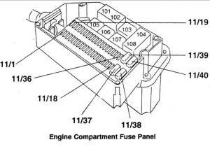 Volvo 850 – diagrama da caixa de fusíveis – compartimento do motor