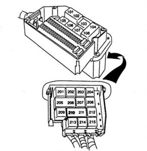 volvo 850 – diagrama da caixa de fusíveis – caixa de relés do motor